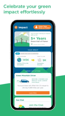 •Get green add-ons like Green Mountain Driver and support sustainability projects through Green Mountain Energy Sun Club.